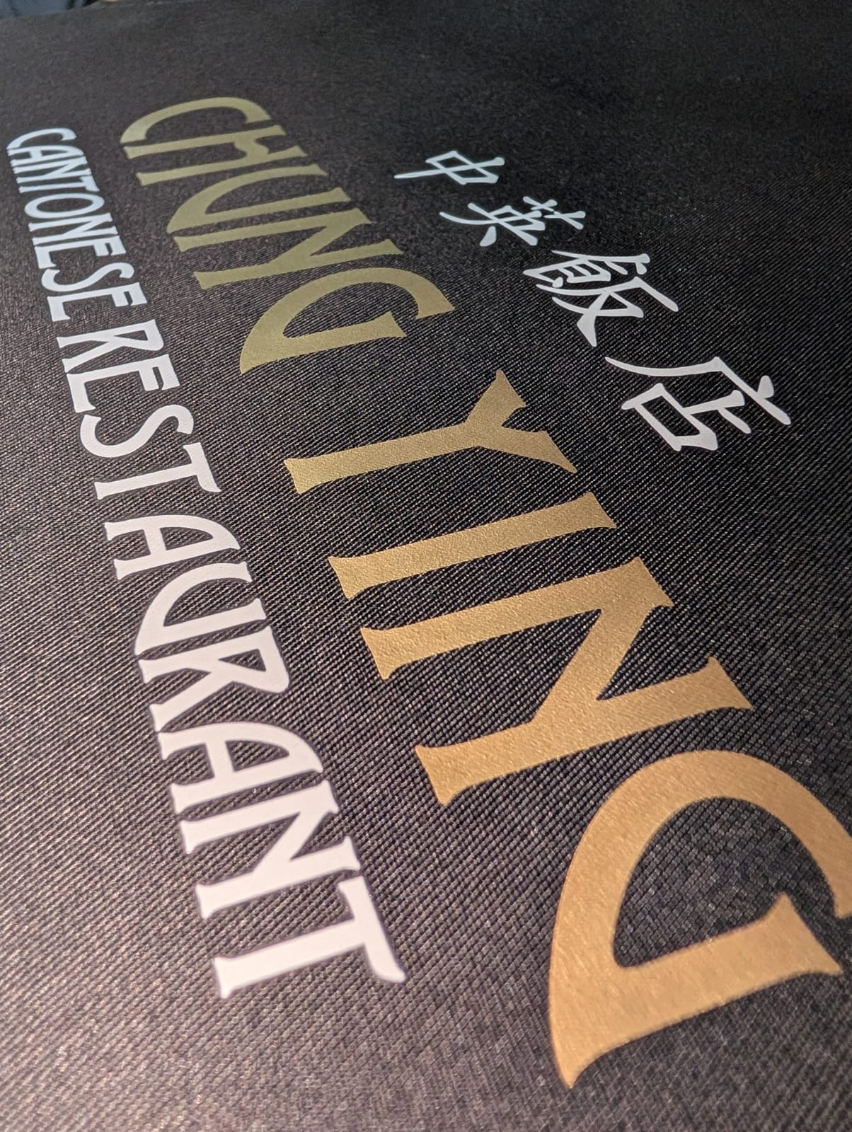 Official Black Chung Ying branded apron, with Chung Ying printed in gold and large pocket at the front (as pictured).